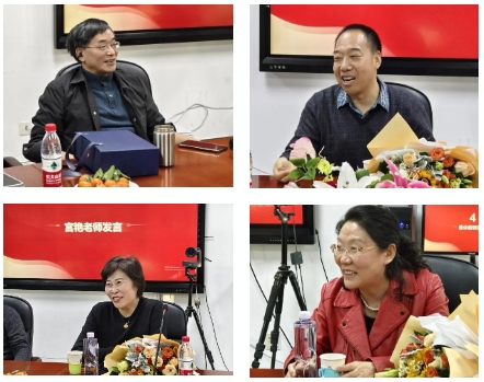 随后,四位退休教师分别发言,他们深情回顾了在学院工作的岁月,表达了对青年教师的鼓励和期许,并表示未来将一如既往地关注、支持学院发展,祝愿学院各项事业再创新辉煌。