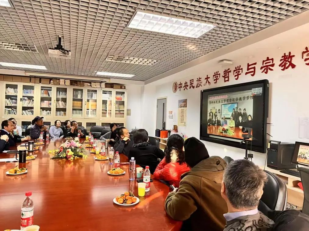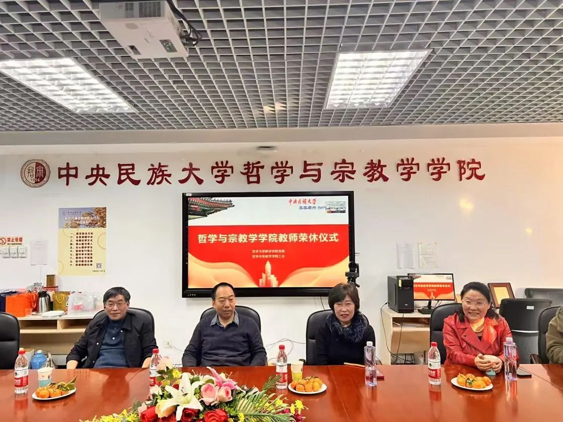 荣休仪式首先播放了由学院党委和工会专为四位退休教师制作的“莫道桑榆晚 为霞尚满天”短视频。回顾了几位老师数十年如一日悉心从教、默默耕耘、无私奉献的从教经历,把自己的一生奉献给了中央民族大学的教育事业,在座的所有老师深受感动和感染。随后校党委常委、纪委书记吕岱瀛连线讲话,作了精彩致辞,向荣休教职工长期以来对学院做出的重要贡献表达了衷心感谢和崇高敬意。他指出,荣休教职工从未因退休而减少对学院、对学生的关心和爱护,他们的敬业精神和教育情怀将永远激励着学院每一位教育工作者。