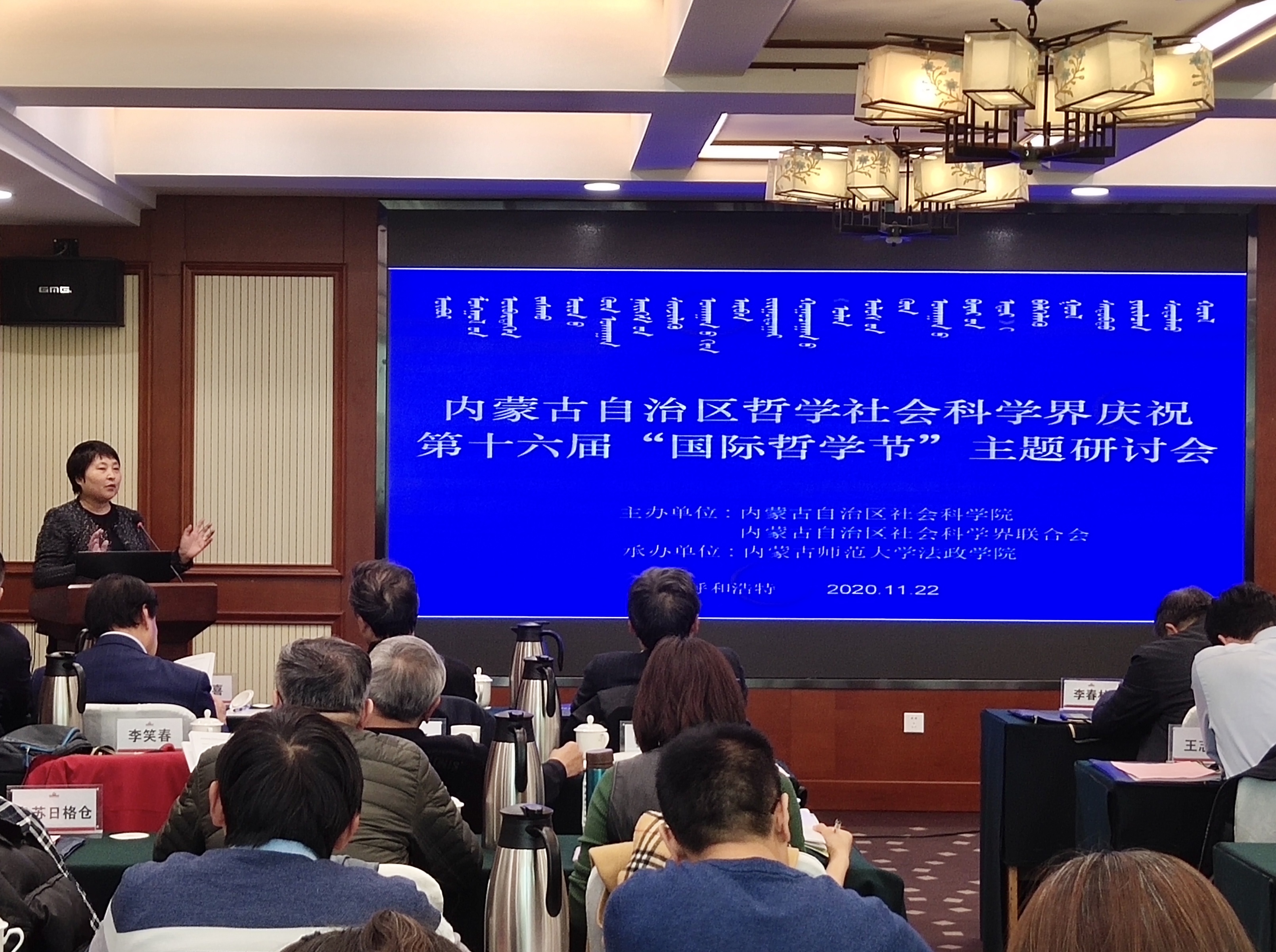 11月22日,内蒙古哲学社会科学界庆祝第十六届“国际哲学节”主题研讨会在呼和浩特召开,会议主题为“哲学方法论”。研讨会由内蒙古自治区社会科学院、内蒙古自治区社会科学界联合会主办,内蒙古师范大学法政学院承办。