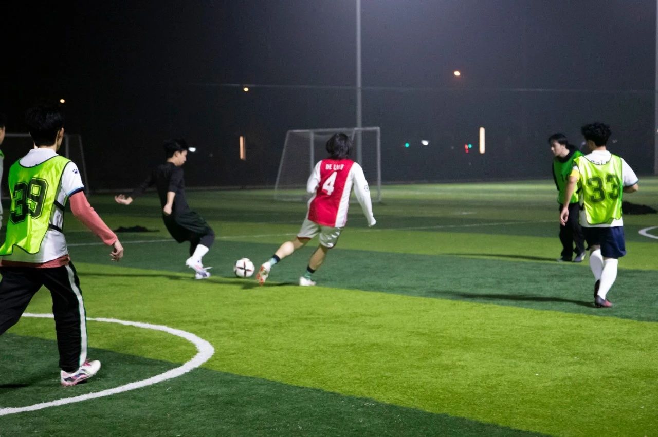 国际教育学院的球员们依旧精神紧绷,他们灵活的传球和射门,精湛的技术,行云流水般的进攻和坚如磐石的防守使场外欢呼声此起彼伏。精彩的比赛为足球场增添生机,友情也在这片绿荫中不断升温。