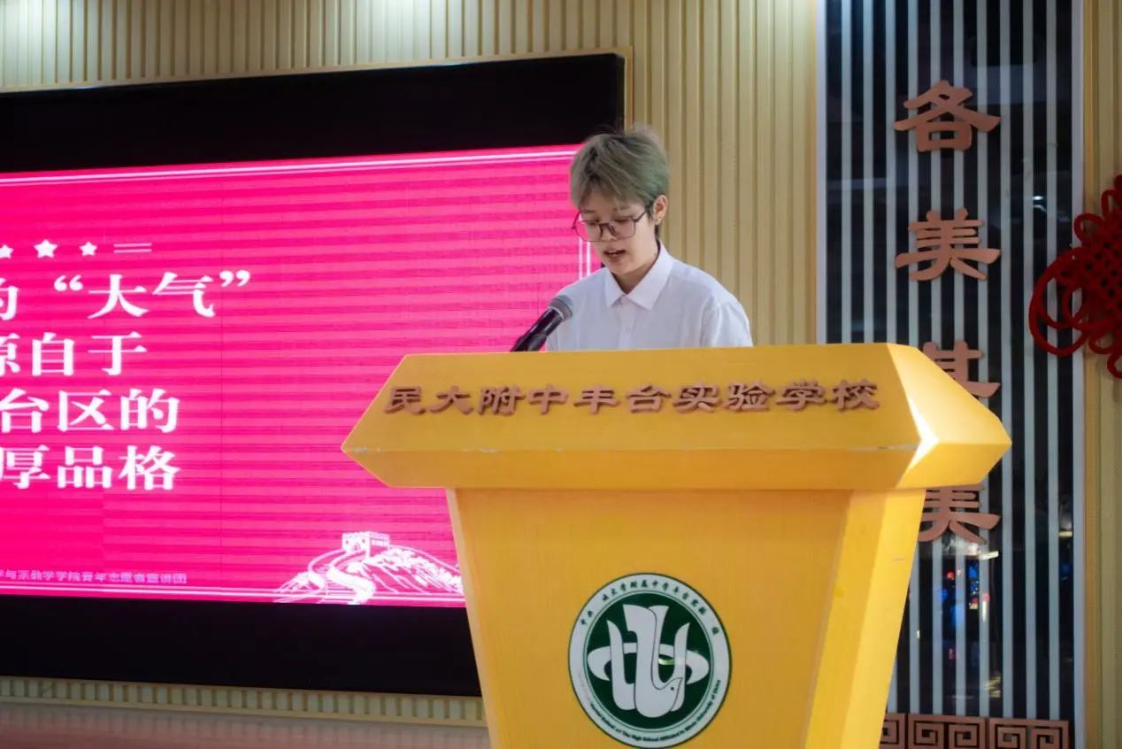 23级哲学班唐海淋通过一幅“雅气王佐”的地图,带领学生观赏王佐镇各色风光,体味“一村一品”特色品牌,呈现丰台的文化自信和现代气质。让大家看见,雅气不仅仅是一个符号和象征,更是一种精神和力量的传承。